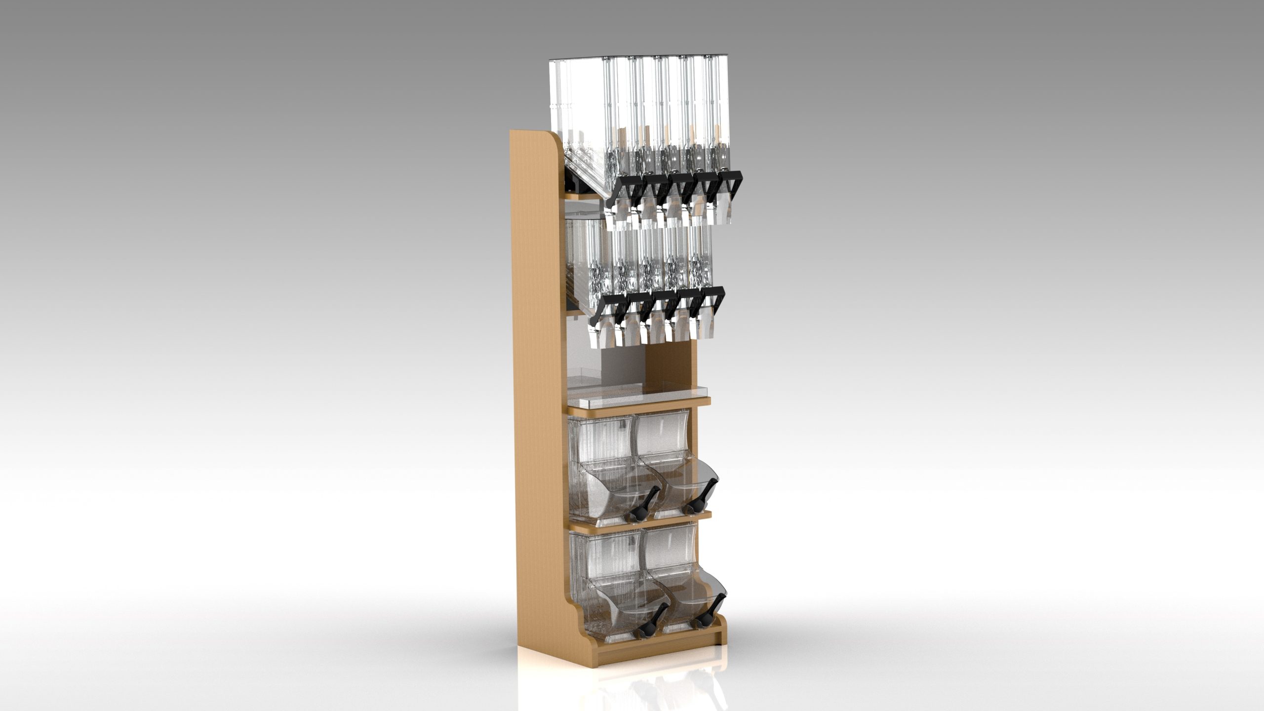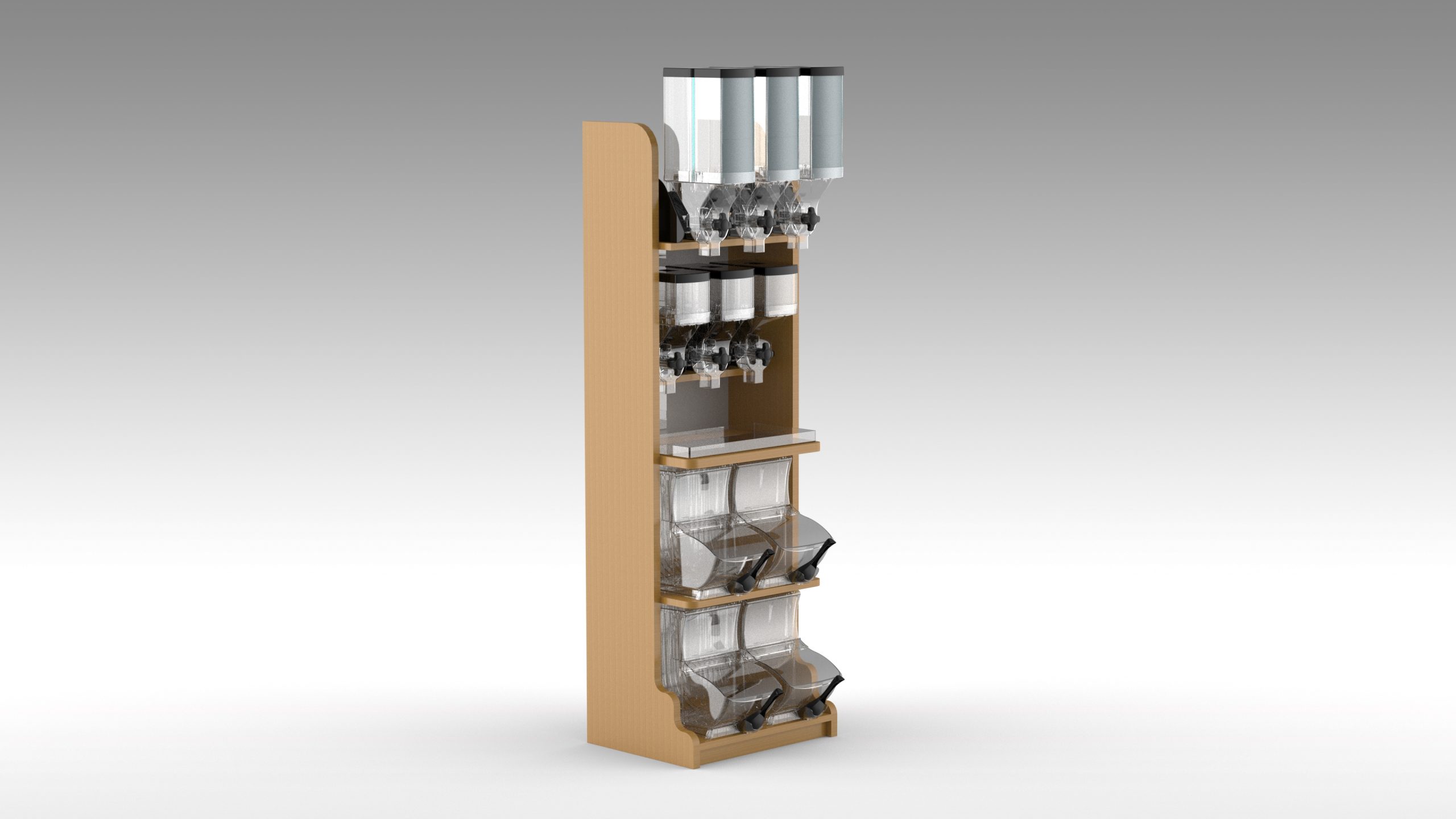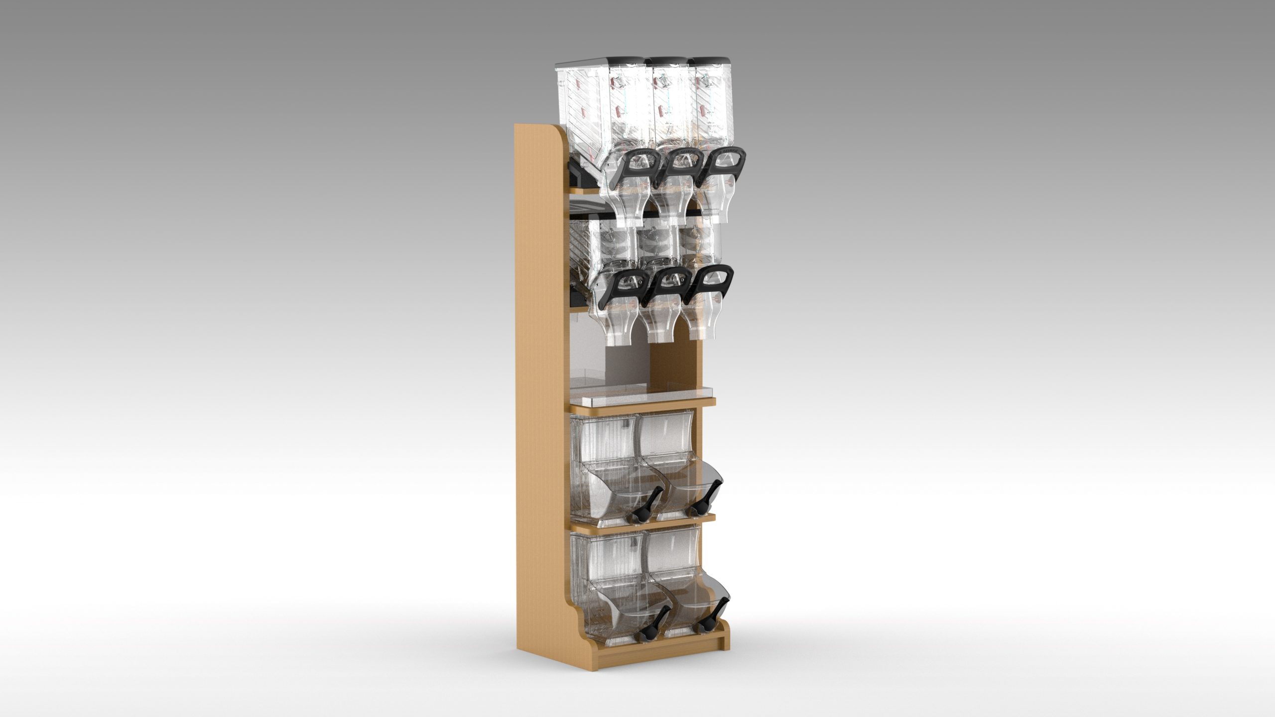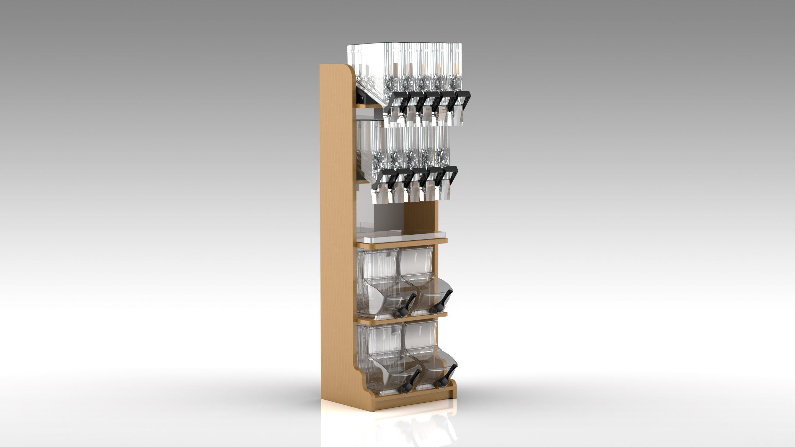 L’étagère TITO permet une mise en place facile et rapide. Elle dispose de plusieurs configurations d’installation offrant la mise en place de distributeurs à poignée, de distributeurs à moulin et de bacs à pelle. Elle se différencie des autres par une structure avec joues ayant plusieurs choix de matière : sapin, épicéa, brut.